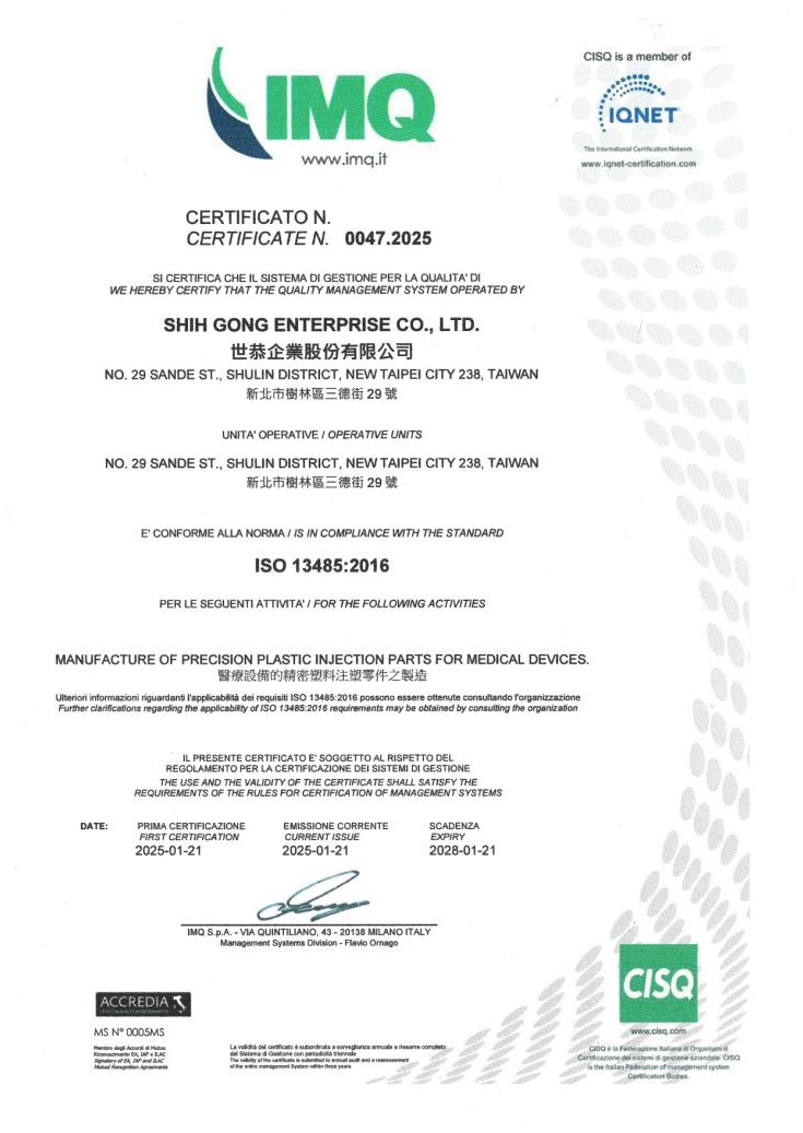 世恭企業有限公司榮獲 ISO 13485:2016 醫療器材認證